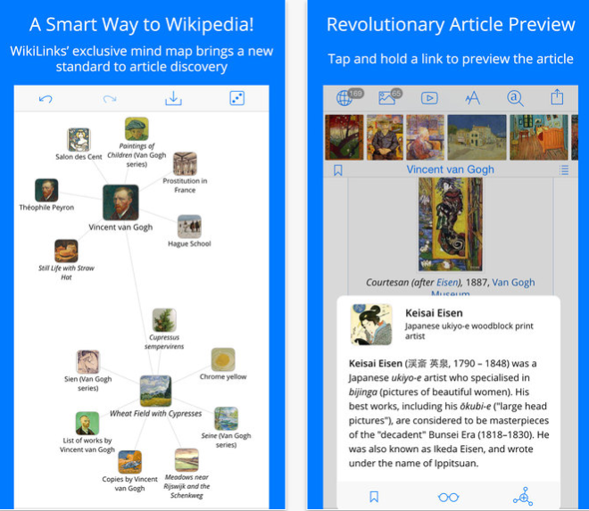 Wikilinks 3 je aplikací, díky které můžete prozkoumávat vše, co Wikipedia nabízí. Tato aplikace vám také poskytne různá YouTube videa spřízněná s tématem, které vás zajímá a přináší pokrokové prohlížení obrázků a fotografií. Takže jestli patříte k těm, kteří si rádi rozšiřují své vědomosti, tak pro vás bude Wikilinks 3 to pravé!
