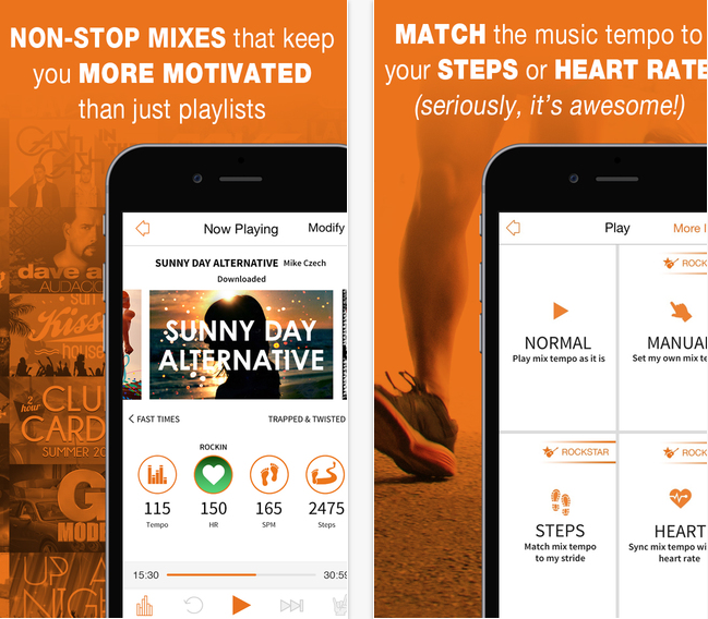Motivujte se s aplikací RockMyRun k větším a lepším výkonům. Aplikace nabízí velké množství skvělých playlistů, které reagují na vaše tělo. RockMyRun vám přináší více zábavy do vašich rutinních cvičení. Aplikace nabízí mnoho různých hudebních mixů, které jsou ušité na míru pro běh. Vyhledávejte, prohlížejte a filtrujte tuny skvělé hudby. Hudbu si také můžete stáhnout pro poslech offline. Aplikace nabízí možnost sdílet vaše oblíbené hudební mixy.