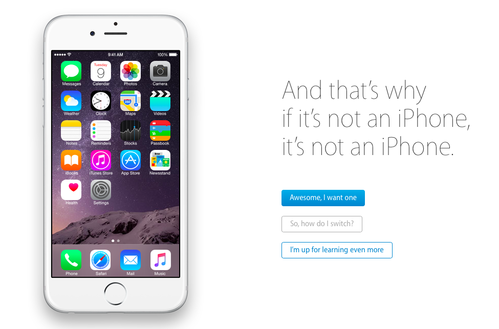 Jedná sa v podstate o prezentáciu rozdelenú do 14 slidov, ktoré obsahujú inak veľmi príjemné animácie, za čo si Apple rozhodne vyslúži potlesk, obzvlášť keď vezmeme do úvahy, že na to nepoužil Flash, ale Javascript a schopnosti HTML5. Reklamná kampaň mimo iného naráža na konkurenciu, aj keď narozdiel od iných výrobcov, Apple ju tu nespomína priamo. Spomína totiž, že ľudia môžu čakať niekoľkoročnú softvérovú podporu a viete, že ľudia u Applu vedia, že dostanú update. U konkurenčných výrobcov s Androidom sa totiž stáva, že aktualizácie prichádzajú oneskorene, častokrát pol roka po tom, ako Google vydá spomínaný operačný systém a dátum vydania updatu sa líši aj v závislosti od toho, v akej krajine a u akého operátora ste kupovali svoj mobil. Upozorňuje tiež na 1 500 000+ aplikácií v App Store a systém schvaľovania, takže ľudia sa nemusia obávať, že by si do telefónu stiahli malware. Rovnako tak v sekcii o Touch ID naráža na NSA a rôzne kauzy, kde k odtlačkom prstov dodáva: „My ich nevidíme. Ani „oni“ ich nevidia. A ani vy ich nevidíte.“