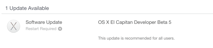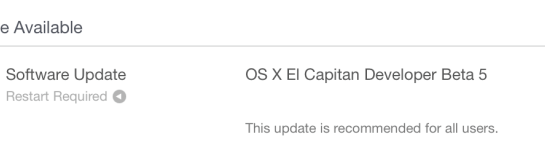 Není tomu ani týden, co Apple vydal OS X El Capitan beta 4 a už tu máme další betu nejnovějšího desktopového operačního systému pro jablečné počítače. Předchozí beta verze nepřinesla žádné viditelné novinky, ale zaměřila se jen na opravu několika chyb. Je pravděpodobné, že tímto směrem se ubírá i nejnovější beta 5, jelikož Apple opět neuvedl, že by nová verze měla přinést něco zásadního. Aktualizovat můžete skrze Mac App Store v záložce Aktualizace.