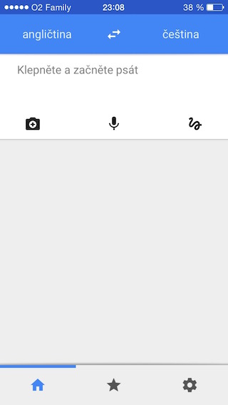 Pro překlad například z němčiny do češtiny a zase naopak je už nutné text vyfotit. Že aplikace neumí překládat okamžitě poznáte tak, že po navolení překladu z němčiny do češtiny nebo naopak, se na ikoně fotoaparátu neukáže zmíněná hvězdička, ale jen kolečko. Rozdíl můžete vidět na snímcích níže. Navíc tato funkce už nefunguje offline, a tak pokud budete chtít v Německu nebo Rakousku takto překládat text na ulici, musíte mít aktivní mobilní internet v zahraničí.