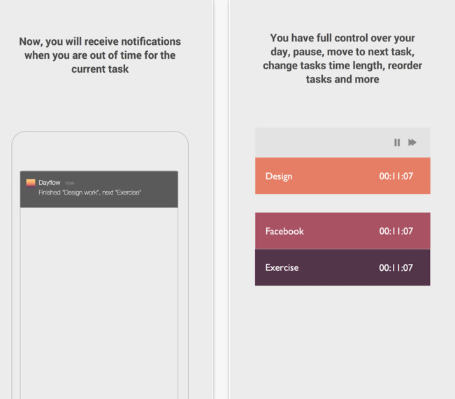 Aplikace Dayflow vám pomůže dokončit efektivně všechny vaše aktivity. Je ideální aplikací pro ty, kteří potřebují trochu motivovat do určitých činností. Lehce si určete, kdy končí váš den a začnete přidávat všechny aktivity, které musíte v daný den dokončit. Rychlé a spolehlivé – to je Dayflow.