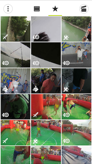 Pokud chcete vybírat scény sami, samozřejmě můžete. Aplikace je neuvěřitelně jednoduchá a nabízí několik možností. Můžete něco málo nastavit, zjistit informace o kameře, vytvořit příběh, tedy krátký a akční film, procházet knihovnu nahrávek které jsou na kartě v kameře a zobrazit živý náhled. Ten je samozřejmě v trošku horším rozlišení, než v jakém je poté výsledné video, ale má tu výhodu, že náhled vidíte přímo na iPhonu a to i když je kamera třeba na surfu nebo na podvozku vašeho sporťáku.