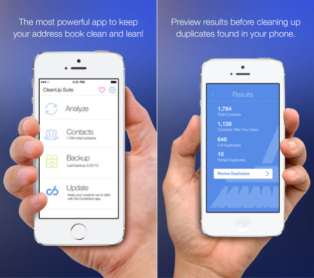 Užitečná a komplexní aplikace, která vám pomůže udržet pořádek ve vašich kontaktech. CleanUp Suite umí automaticky vyhledat a sloučit duplikované kontakty. Dále umí vybrat a odstranit velké množství kontaktů najednou. Aplikace vám před provedenými změnami automaticky zálohuje vaše kontakty. Samozřejmě si vždy můžete nastavit kontakty manuálně.