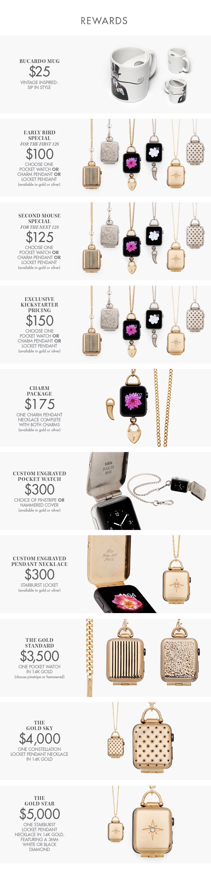 Bucardo vytvořilo speciální pouzdro a řetízek, který přemění Apple Watch v kapesní hodinky a umožní vám tak vrátit se do minulosti alespoň stylem, který takto upravené hodinky prezentují, přitom jim však nechybí jediný detail. Hodinky navíc budete mít možnost vložit do pouzdra s cenou od 100$ do 5000$ a zda se bude jednat jen o pozlacený obal nebo o kompletně zlaté pouzdro s dimanatem, záleží jen na vašem vkusu a budgetu.