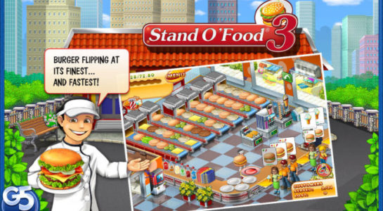 Stand O’Food® 3 je populární hrou, ve které prodáváte burgery. Otevírejte postupně nové restaurace a servírujte svým klientům jídlo. Hra nabízí 75 levelů, 12 bonusových levelů, možnost odemykat postupně různé předměty a různé úkoly k dosažení statusu experta.