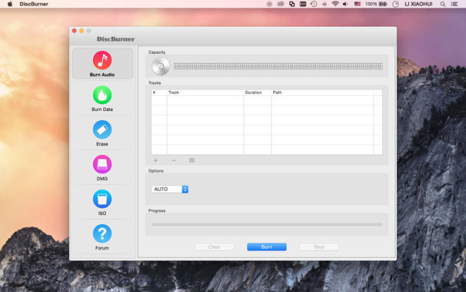 DiscBurner je profesionální vypalovací aplikací. Můžete použít DiscBurner na vypálení dat, iso a dmg souborů. Podporuje CD, DVD, HD-DVD a BD.