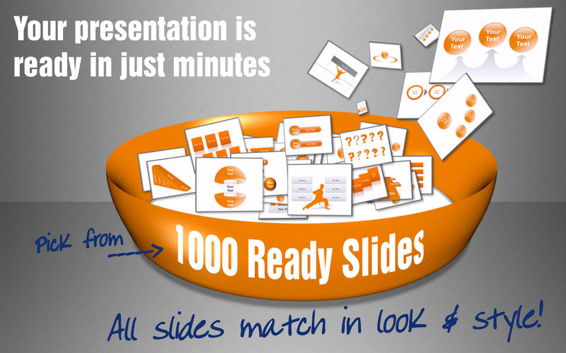 Aplikace 1000 Slides vám nabízí přes 1000 3D prémiových šablon pro PowerPoint a Keynote. Vybírejte z 50 odlišných kategorií šablon, dále můžete měnit barvy, velikosti a pozice vybraných šablon. Vytvářejte efektivní a přehledné prezentace snadno a rychle.