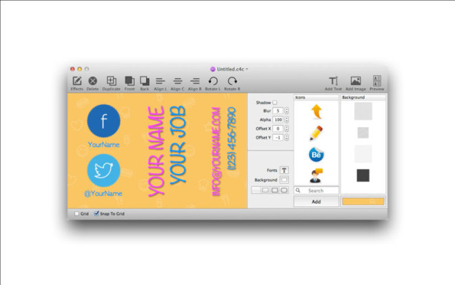 Šikovná aplikace Card4Call je přehlednou aplikací s jejíž pomocí si snadno vytvoříte své vlastní vizitky (8.5 x 5.5 cm). Aplikace nabízí 2360 ikon a 140 typů struktur a mnoho druhů písma. Nepodceňujte význam vizitek.