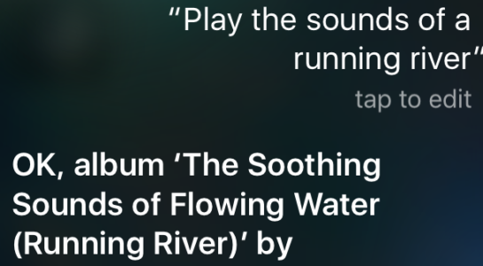 Pokud jste updatovali na nejnovější verzi iOS 8.4.1 nebo iOS 9 s Apple Music, pak máte nově možnost přehrávat díky Siri zajímavé zvukové efekty, mezi kterými nechybí tekoucí voda, praskající oheň, cvrkot cvrčků nebo třeba kvákání žab. Stačí mít aktivovanou Apple Music a Siri v angličtině. Poté jen stačí podržet Home tlačítko nebo pokud máte iPhone připojený k nabíječce, tak říct „Hey Siri“ a asistentka se okamžitě aktivuje.