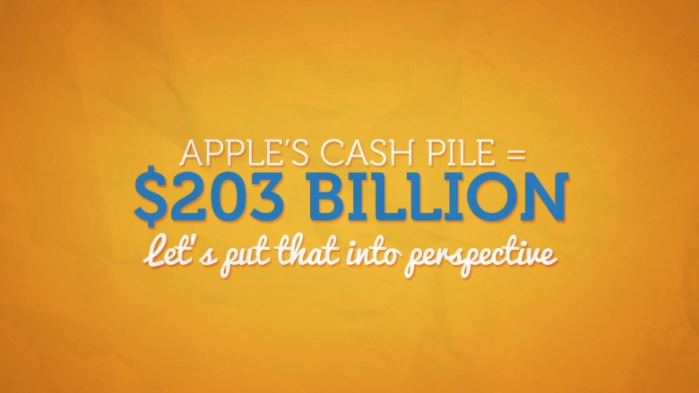 Poměrně známý server Cult of Mac vytvořil zajímavé video, ve kterém srovnává věškerý majetek Applu v peněžní hodnotě spolu s několika věcmi, službami nebo s čýmkoli, co vás jen napadne. Apple má v současné době na svých účtech hotovost v hodnotě 203 miliard dolarů, což si vydělal především tím, že jeho produkty jsou nesmírně úspěšné, na čemž měl největší podíl zaručeně iPhone, který je nejpopulárnější.