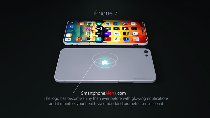 Zajímavostí je také Apple logo na zádech telefonu. To by podle autorova konceptu mělo také nabídnout biometrický senzor a navíc by hlídalo váš tep a aktivitu. Logo by sloužilo také jako notifikační dioda, tudíž by svítilo nebo blikalo například při obdržení iMessage nebo zprávy z Messengeru.
