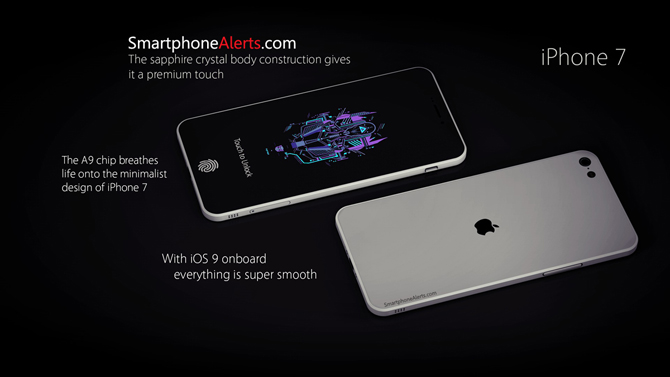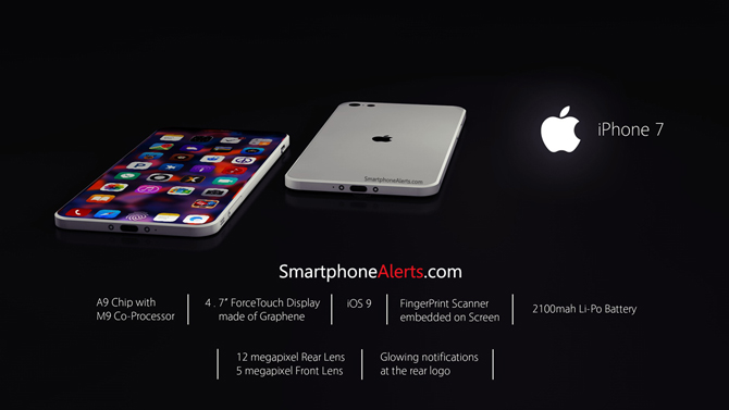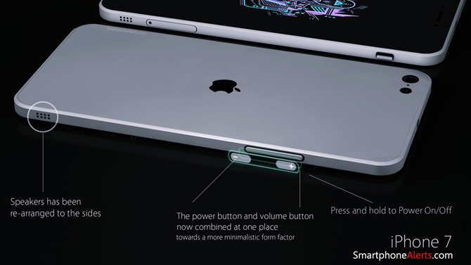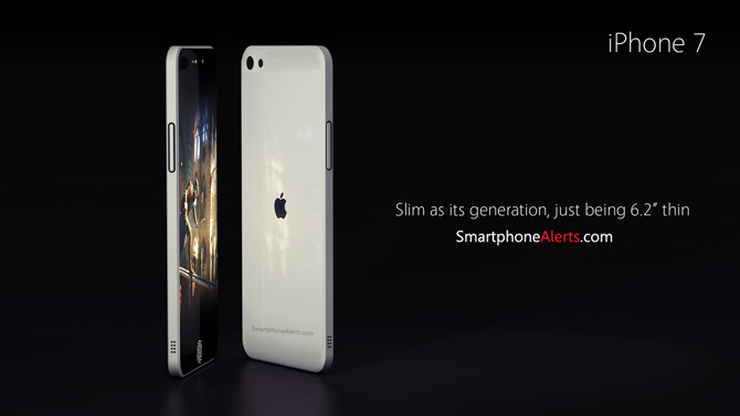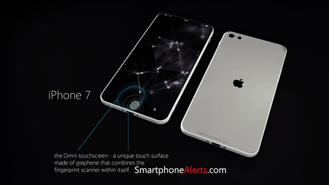 Nejnovější koncept iPhonu 7 od smartphonealerts.com nám nabízí malý náhled do budoucnosti a myslí i na nejnovější spekulace. Jejich koncept totiž nedisponuje žádným Home tlačítkem, ale Touch ID je zabudované přímo v displeji, díky čemuž je displej přes celé tělo telefonu téměř bez žádných okolních rámečků.