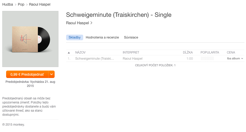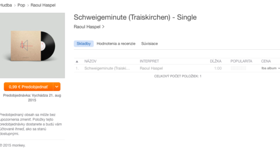 Ale nie je to skladba. Je to minúta ticha, ktorá sa teraz dostala na prvú priečku v iTunes Store ako vyjadrenie úcty voči utečencom, ktorí prichádzajú do Európy z afrických a arabských krajín. Minútu ticha, ktorú si môžete predobjednať za 99 centov, nahral Raoul Haspel. V súčasnosti je dostupná len ako predobjednávka, ale štatistika naznačuje tomu, že po jej vydaní sa dostane okamžite na prvé miesto v iTunes Top Chart. Nie je to samozrejme prvýkrát, čo sa v iTunes objavilo ticho. Už krátko po smrti Steva Jobsa sa do obchodu dostala The Steve Jobs Moment of Silence. Je to 8 sekúnd ticha a jeho kúpou podporíte boj proti rakovine pankreasu, na ktorú Jobs zomrel. Navyše je to skladba, z ktorej si Apple neučtuje tradičných 30% a tak všetkých 100% putuje na dobročinnosť.
