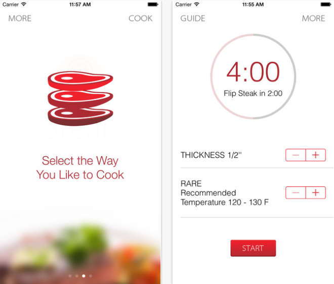 Výborná aplikace, která vám značně usnadní grilování. Perfektní steak asistent pro iPhone či iPad. Jednoduše zvolte tloušťku steaku a stupeň propečení steaku. Aplikace vám doporučí určitou teplotu a upozorní vás, kdy byste měli obrátit steak.