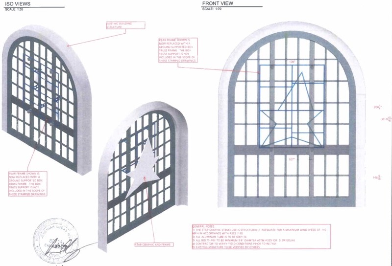 Navíc v předložených dokumentech je popsáno, že společnost během pronajmutí budovy odstraní čtyři okenní panely, aby mohla do oken umístit symboly „hvězd.“ Jenže ony hvězdy jsou popsány hned dvěma způsoby. První je zcela typická hvězda a druhá má nestandartní tvary a zejména horní část je nakloněna přesně tak jako stopka jablka v logu společnosti. Do hvězdy by se pak vešlo celé jablko, tudíž hvězda je jen jakýmsi klamem, aby nebylo vše prozrazeno. K tomu všemu by si jen tak nějaká společnost nedovolila vyrvat rámy z oken, aby vše vypadalo dokonale, jak chce.