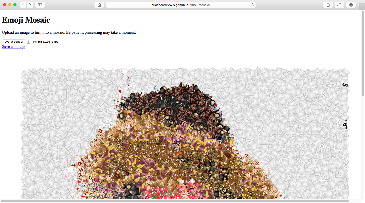 Web vývojáře pro server The New York Times, Eric Andrew Lewis, vytvořil naprosto jednoduchý, ale zajímavý nástroj, který využívá speciální algoritmus k tomu, aby jakoukoli fotografii převedl na mozaiku poskládanou z Apple emotikonů. Na jeden obrázek jsou použity tisíce až miliony emotikonů a vytvoření mozaiky trvá v závislosti na tom, jak je obrázek velký a složitý, ale většinou jde jen o několik vteřin.