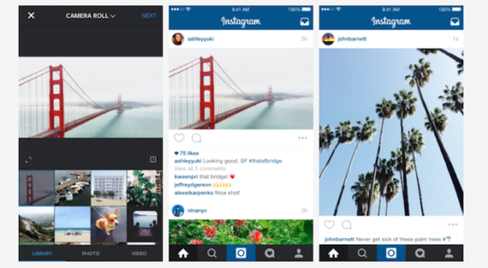 Nově však uživatel může na Instagram nahrát fotografii, která je vyfocená buďto na šířku klidně i ve formátu panorama nebo na výšku, a takto vyfocenou jí nahrát na Instagram bez nutnosti jí ořezat do tvaru čtverce a tím tak zkazit třeba i původní krásu fotografie. Stejné změny se pak týkají i videí, u kterých je také novinkou to, že nyní lze pro jejich úpravu použít všechny filtry, které Instagram nabízí pro fotografie. Původně bylo možné použít jen několik filtrů určených přesně pro videa.