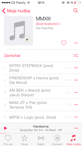 Po skončení tříměsíčního zkušebního období zdarma s Apple Music rozhodně nepočítám. Nehodlám měsíčně platit za něco, co mi nemá moc co nabídnout, a když už bych si něco poslechl, tak to ani nefunguje pořádně. Celkově se s Apple Music a novou aplikací Music na iOS vytratila jakási jednoduchost. Abyste si mohli přidat skladby do fronty, tak musíte klikat dvakrát až třikrát, nabídka při rozkliknutí „tří teček“ je nepřehledná (na iOS 9 je to lepší) a tlačítko srdíčka a sdílení v ovládacím centru jen kazí celkový minimalistický design.