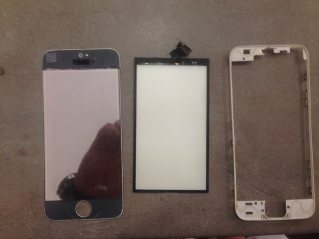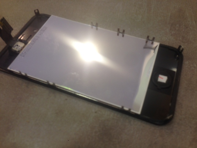 Prvním servisem byl iPhone 4s v černé barvě. Paní chtěla vyměnit LCD panel, který byl prasklý. Uvedla, že přístroj byl cca před 4 měsíci servisován v opravně v Praze se stejnou závadou. Přístroj byl pohledově v běžném stavu. Jen LCD panel více vyčuhoval, než je norma (nebylo způsobeno pádem) čili to nasvědčovalo tomu, že se nejedná o originál ani certifikovaný díl. I přesto bylo údajně paní v opravně sděleno, že se zaručeně jedná o originální díl. Přístroj se ještě neotevřen nafotil. Pak přišla na řadu demontáž skla. A zde nastala ta pravá „sranda“ Po vyjmutí LCD panelu a odpojení od základní desky vypadal panel takto:
