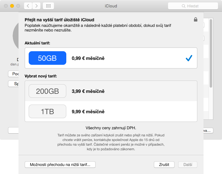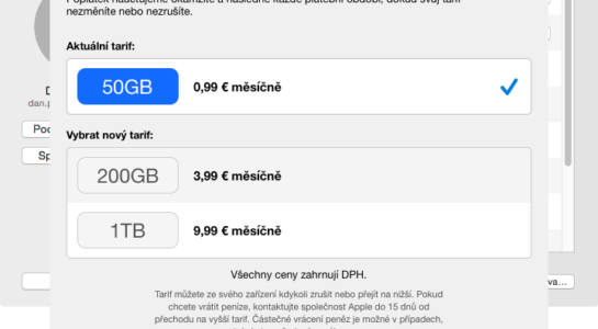 Daniel Pražák: „přejít na jiný tarif“ co je na screenshotu sice píše 50GB, ale jinak jak v iOS, tak v OSX to ukazuje 20