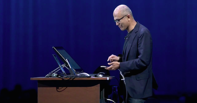 Microsoft a Apple sa majú celkom radi a videli sme to pri predstavení iPadu Pro, kedy kalifornský gigant nechal Microsoft, aby odprezentoval tie najdôležitejšie novinky iPadu Pro – multitasking, Pencil a väčší displej. To, že mal Microsoft možnosť prezentovať potenciál „Pro“ produktu, mu tak trošku zvýšilo ego a umožnilo mu spraviť si srandu z iPhonu nevšedným spôsobom. CEO spoločnosti Satya Nadella totiž na konferencii Dreamforce ukázal kolekciu aplikácií z dielne Microsoftu a tým, že zariadenie bolo plné aplikácií od neho, nezostalo nič, než prístroj nazvať iPhone Pro. V skutočnosti to bol ale len iPhone 6 naplnený kopou produktívneho softvéru.