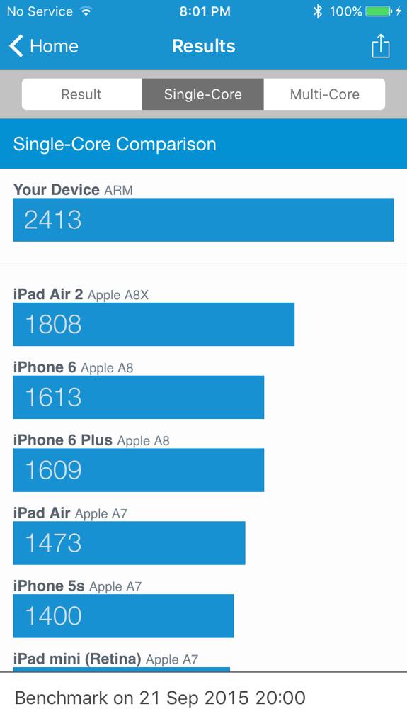 Zákaznice, která na Twitteru vystupuje jako @MoonshineDesign, zveřejnila několik fotografií nové barevné varianty a dokonce potvrdila i několik předpovědí včetně 2GB RAM a ukázala test v Geekbench 3, kde si iPhone 6s vysloužil sinlge-core skóre 2413, což je více než iPad mini 3 Retina iPad mini, loňský iPhone 6 a dokonce i více než iPad Air 2. Multi-core skóre je pak vysokých 4795, čímž se z něho stává opravdu nejvýkonnější iPhone a s přehledem překonává své předchůdce i veškeré prodávané iPady.