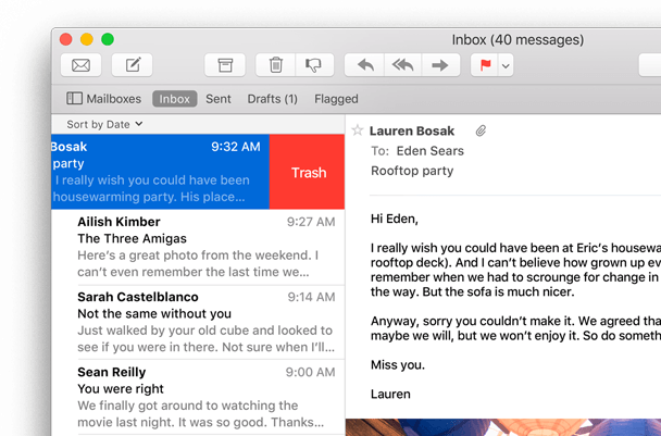 O něco menšího vylepšení se dočkala také výchozí aplikace Mail. S e-maily si teď můžete poradit přejetím stejně jako na iOS zařízeních. Přejetím doprava označíte e-mail jako přečtený nebo nepřečtený, přejetím doleva ho smažete. dále pak Mail umí jedním kliknutím uložit uživatele, kterého nemáte v kontaktech a také sám rozpozná, zda si nějaký uživatel změnil nebo založil e-mailovou adresu a navrhne vám případnou změnu.