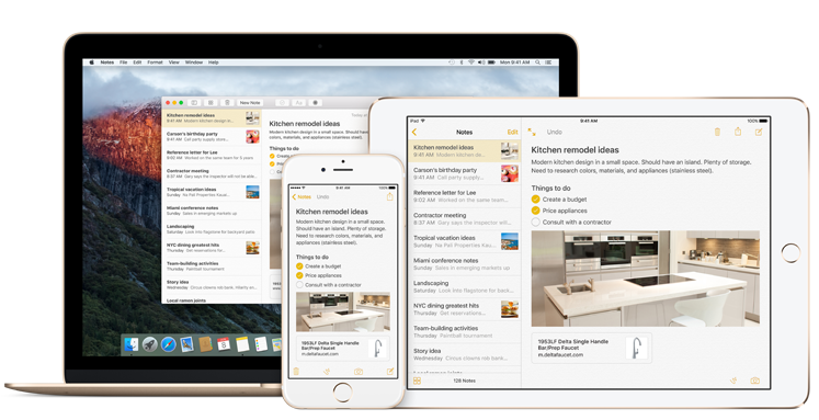 Stejně jako na v iOS 9, tak i v OS X El Capitan prošly Poznámky velkou změnou. Ty jsou daleko víc než jen skvělý nástroj na rychlé poznamenávání nápadů, které nechcete zapomenout. Obyčejný seznam teď hravě změníte na zaškrtávací seznam. Doplníte do poznámky fotku, video, webovou adresu nebo místo na mapě. iCloud se přitom postará o to, abyste všechny poznámky a jejich obsah měli aktuální ve všech svých zařízeních. Do Poznámek můžete přidávat fotografie, seznamy nebo třeba i kreslit. Vše se navíc synchronizuje přes vás iCloud účet.