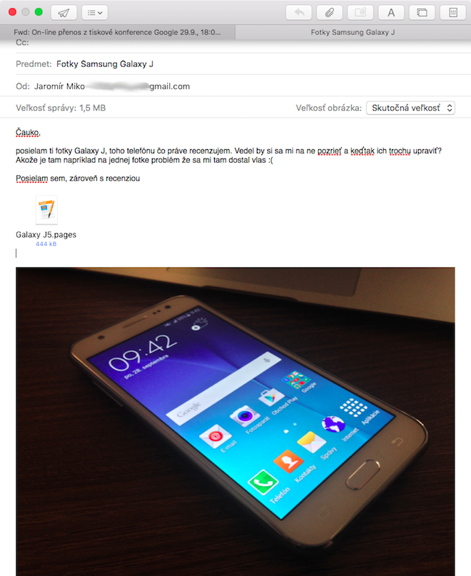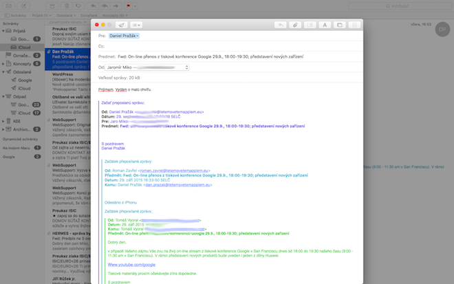 S príchodom full screenu a OS X El Capitan sme sa dočkali užitočného vylepšenia aplikácie Mail. Po novom, keď ju máte otvorenú v režime celej obrazovky, môžete začať písať novú správu tak, že kliknete na tlačidlo pre preposlanie, reagovanie na správu alebo na poslanie novej správy. Okno sa vám teraz vysunie zo spodnej časti obrazovky.