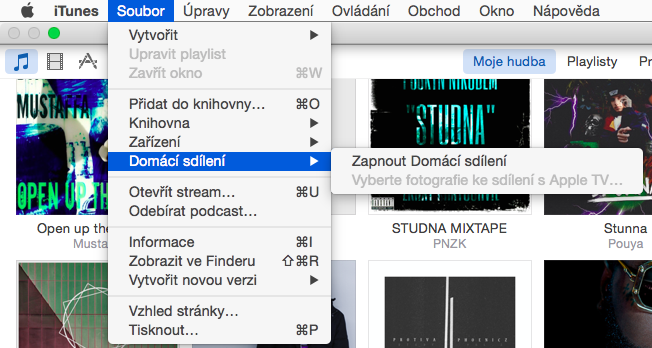V první řadě se musíte připojit ke stejné Wi-Fi síti a být jak v iTunes tak na svém iOS zařízení přihlášení ke stejnému Apple ID. iTunes knihovna musí být uložena v počítači nebo na externím disku. Samozřejmě během používání Domácího sdílení musíte mít otevřenou aplikaci iTunes.