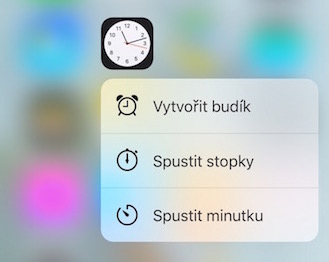Při silnějším stisknutí ikony aplikace na domovské obrazovce se zobrazí rychlé akce, které vás přesměrují přímo do určité oblasti v aplikaci nebo rovnou například zahájí nějakou akci, jako třeba okamžité spuštění stopek nebo minutky. Rychlé akce ale nefungují na všech ikonách a vývojáři musí tuto funkci do své aplikace nejprve implementovat.