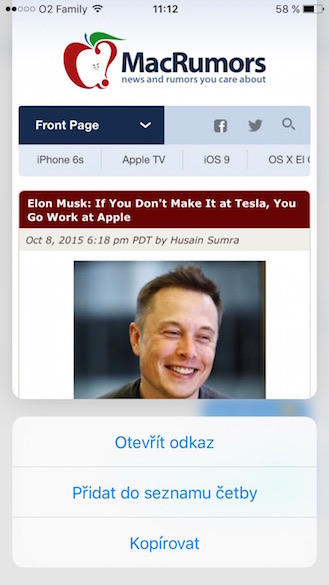 Například v aplikaci Zprávy, Mail nebo Safari můžete nahlédnout na odkaz tím, že na něj silněji zatlačíte. Tím pádem jej můžete buďto potom následným ještě silnějším stlačením otevřít nebo pokud prst uvolíte, tak náhled zase zmizí. Při zobrazení náhledu můžete navíc jet prsem nahoru a dole pod náhledem se vám ukáže další nabídka, co můžete s odkazem dělat.
