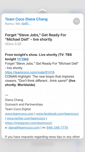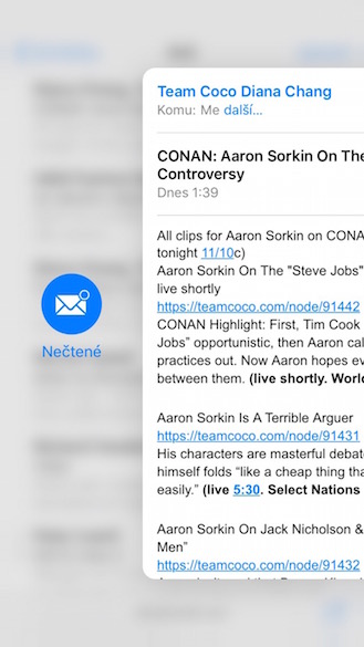 V aplikací Mail můžete snadno silněji stisknout jakýkoli email a ukáže se opět jeho náhled, díky čemuž si jej můžete přečíst. Pokud ale s přitlačeným prstem pojedete doleva, tak se zobrazí možnost, abyste email označili jako přečtený. Pokud byste jeli prstem doleva, tak můžete email okamžitě smazat.