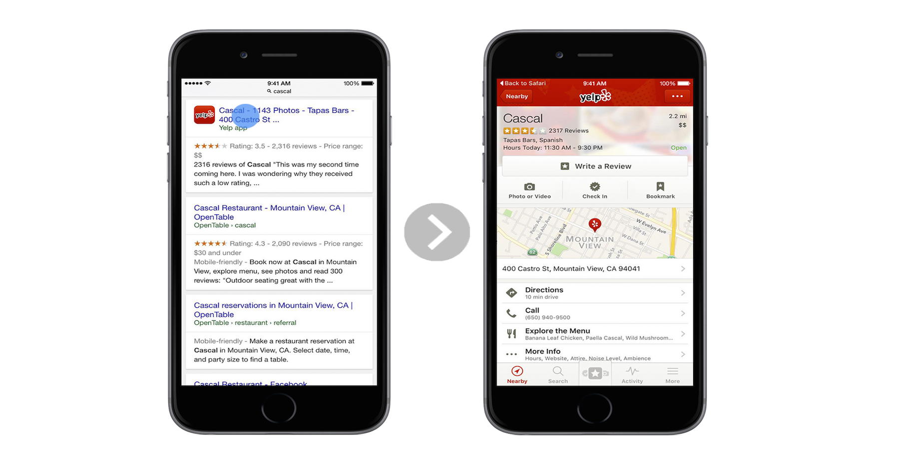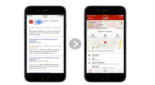 Google představil vyhledávání v iOS aplikacích již v květnu. Funkce umožňuje zobrazení odkazů do aplikací (například místo v Yelp!) ve vyhledávání a až doposud byla dostupná pouze v aplikaci Google a prohlížeči Chrome. Nyní se tato funkce rozšiřuje i do klasického webového vyhledávání v Safari. Android si s aplikacemi rozumí také a všechna zařízení, která mají jako výchozí prohlížeč Chrome tuto funkci podporují.