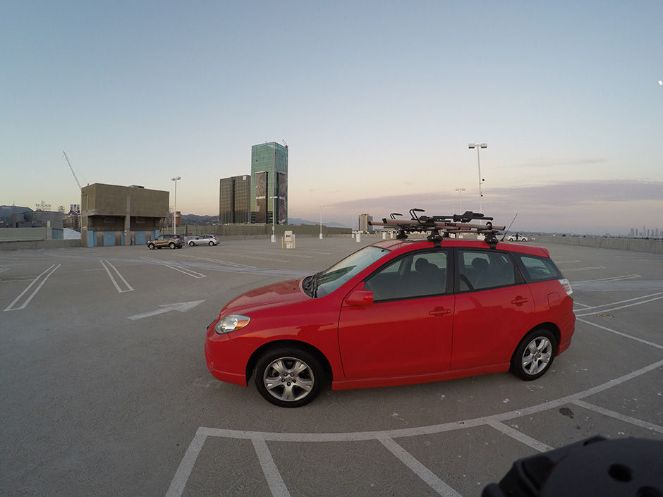 Na týchto sa zameriame na hĺbku prekreslenia v detailoch. Z pôvodných fotiek auta sme sa zamerali na bicykel na streche. Všimnite si na fotkách z TomTom je čierna čiernou a biela belejšou a tak je ľahšie čitateľnejší nápis na plášti zadného kolesa. Takisto nápis „Handmade in USA“ je nerozľúštiteľný na fotke od GoPro :(
