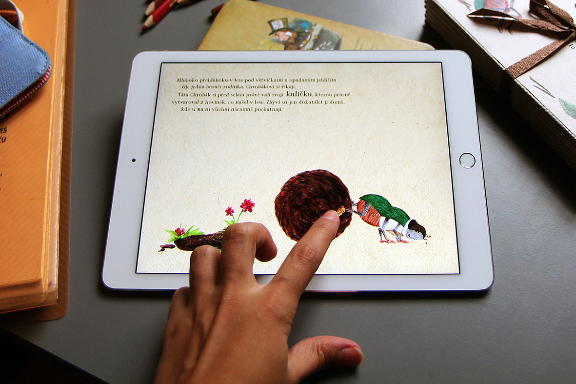 Broučí pohádka se odehrává na 21 interaktivních stránkách, kde ilustrace lesních hrdinů ožívají čtenáři pod rukami. Sám má také možnost volby. Ti nejmenší si mohou nechat knihu předčítat a hrát si s animovanými ilustracemi. Je zde ale také možnost vypnutí zvuku a ponoření se do příběhu tak, jak je to v klasické papírové knize. Hlas broučímu vyprávění i jednotlivým aktérům propůjčil Pavel Liška. Kniha je k dispozici v obchodech operačních systémů Android a iOS. Připravujeme i verzi pro Windows a Mac.