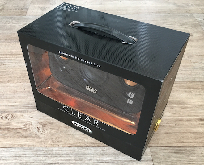 X-mini CLEAR je zabalený do propracované krabice a jeho rozbalování si popravdě užijete, jelikož je vsazen do jakési bedničky, do které lze nahlédnou a otevřete jí pomocí dvou přesek umístěných na každé straně balení. Uvnitř pak najdete dlouhý a poměrně těžký napájecí kabel, manuály, samolepky a nakonec i samotný reproduktor X-mini CLEAR.