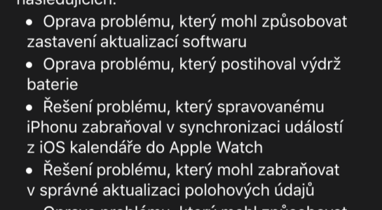 A o aké opravy chýb sa tu jedná? V prvom rade, a možno to vyznie trochu ironicky, aktualizácia prináša opravu problému, kvôli ktorému sa nemuselo podariť inštalovať aktualizácie. Užívatelia ďalej isto ocenia opravy problémov, ktoré zhoršovali výdrž batérie. Ďalej bol opravený problém, kvôli ktorému sa nemusela podariť synchronizácia informácií z kalendára na iPhone do hodiniek. Opravená tiež bola chyba, ktorá mohla hodinkám zabraňovať v aktualizovaní informácií o polohe. Rovnako tak bol opravený problém, kde mohol byť Digital Touch omylom poslaný z mailu miesto telefónneho čísla. Užívatelia tiež môžu po novom používať ciferníky Live Photos bez obáv, že by došlo k nestabilite systému a napokon, bol opravený problém, kvôli ktorému ostal snímač krvného tepu permanentne zapnutý po tom, ako ste požiadali Siri, aby vám zmerala tep.
