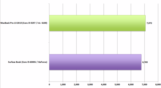 Benchmarky su jedna vec a real life performance je druha. Cisla su cisla ale FPS v Tomb Raider hovoria za vsetko. Surfacebook je rychlejsi ako MacBook Pro