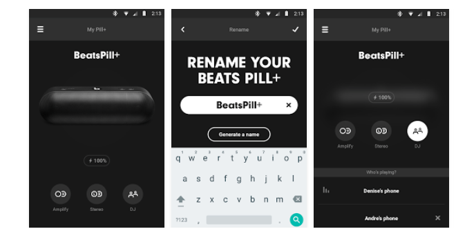 Nová Andoroid aplikace s názvem Beats Pill+ umožňuje uživatelům ovládat přehrávání hudby na stejnojmenném reproduktoru nebo použít dva zmíněné reproduktory jako jeden, přičemž se spojí a přehrávají stejnou hudbu z jednoho zařízení. Dva reproduktory mohou být použity také jako stereo reproduktory, kdy si můžete určit, že jeden bude sloužit pro pravý kanál a druhý pro levý.