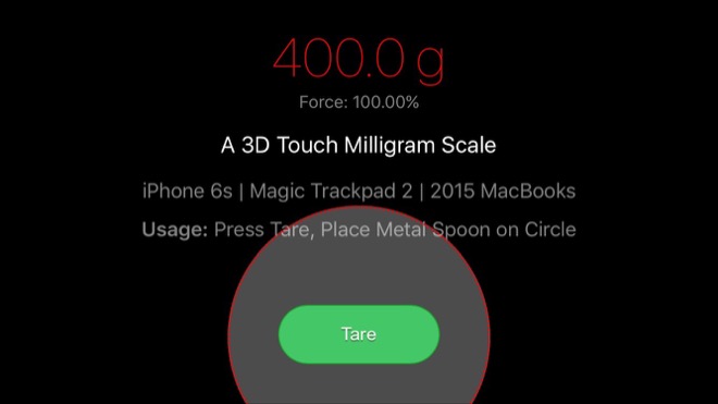 Vývojář Asher Trockman totiž vytvořil geniální webovou aplikaci, kterou si jen otevřete na svém iPhonu 6s v prohlížeči Safari, nastavíte sensitivitu 3D Touch, kterou jste si určili v nastavení a poté položíte na displej kapacitní předmět, kterým může být například jablko nebo pomeranč, který jsme mohli vidět u Huawei. Aplikace okamžitě začne vážit a hmotnost se vám zobrazí v dolní části displeje vedle tlačítka pro resetování hmotnosti.
