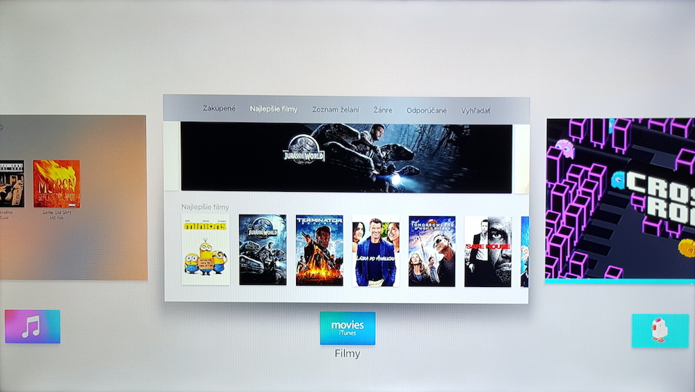 Nová Apple TV používa upravené jadro iOS 9 pomenované ako tvOS a práve preto sa môžete v novej Apple TV stretnúť s niektorými vlastnosťami, ktoré môžete poznať z iPhonu alebo iPadu. Napríklad je to App Store s iOS aplikáciami alebo potom vec, o ktorej ste ešte nemuseli vedieť a sám som na ňu narazil čírou náhodou, keď ma podvedomo napadlo dvakrát stlačiť domovské tlačidlo na ovládači Siri Remote. A čo sa nestalo? Miesto toho, aby ma Apple TV vrátila na domovskú obrazovku, sa mi v skutočnosti na obrazovke zjavilo veľmi dobre známe multitasking menu z iOS 7 a iOS 8 a ja som získal možnosť prepínať sa medzi práve spustenými aplikáciami. Zároveň som tak uvidel, ktoré aplikácie mám práve na Apple TV spustené, čiže som mal možnosť rýchlo sa prepnúť z hry do Apple Music, kde som si spustil playlist a následne som sa prepol naspäť do hry, v ktorej som pokračoval (bola to Crossy Road, mimochodom veľmi chytľavá vec).