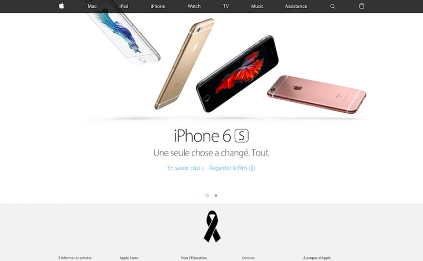 Na to, čo sa udialo včera vo večerných hodinách v Paríži, naša redakcia nenašla vhodné slová. Teroristický útok v Paríži, ku ktorému sa dnes ráno prihlásila extrémistická skupina Islamský štát, po sebe zanechal viac ako 100 nevinných obetí, smútok a ako to vyzerá, tak aj stupňujúcu sa nenávisť voči imigrantom, ktorí sem prichádzajú práve z Blízkeho východu. Smútok, súcit s obeťami a ich príbuznými zo včerajšieho parížskeho masakru, ktorý zorganizovala skupina vrahov skrývajúca sa za niečo, čo ani neexistuje (min. nie sú dôkazy), už vyjadrili nielen svetové médiá, ale aj veľa osobností, medzi ktoré patrí aj CEO Tim Cook a spoločnosť Apple. Zatiaľ čo Cook vyjadril svoj smútok prostredníctvom Twitteru, na francúzskom webe Applu dnes nájdete čiernu stuhu na znak smútku voči udalosti, pri ktorej zbytočne vyhasli ľudské životy…