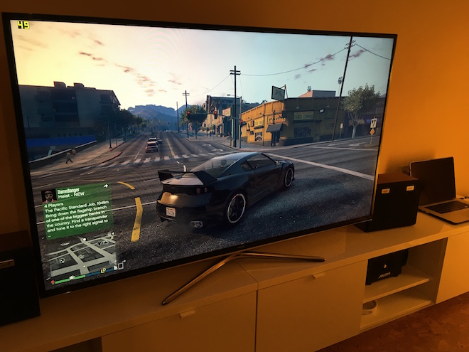 Spuštění je velice jednoduché pouze zapojit kabel, zapnout macbook, zapnout krafickou kartou respektive box a to je vše. S mým Macbookem Pro Retina 15, 2014 – s procesor I7 na 2,2Ghz mám naměřené FPS ve hře GTA V na maximální detaily v rozlišení Full HD 35-50 FPS.