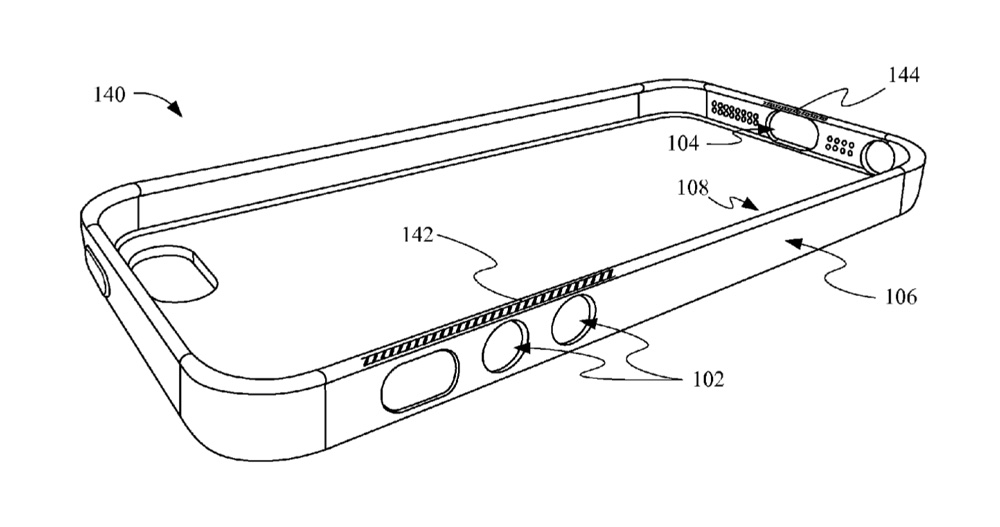 Apple ukazuje, že na kritických miestach, kde sa nachádzajú otvory pre tlačidlá na zmenu hlasitosti alebo Lightning konektor, by sa nad nimi nachádzala vrstva pozostávajúca z kompozitného materiálu, ktorý by posilnil odolnosť telefónu na týchto krízových miestach. Posilnenie by bolo celkom na mieste, vzhľadom k tomu že prvé kusy iPhone 6 Plus sa ohýbali práve vo výške bočných tlačidiel, kde bola hliníková konštrukcia tenšia než na iných miestach. Apple však už vtedy zareagoval a posilnil krízové miesta výstužou z titanu, ktorý je dostatočne pevný na to, aby ste už mobil neohli. Tento rok sa Apple pre zmenu rozhodol použiť spomínaný hliník série 7000, ktorý už minulý rok prezentoval ako súčasť Apple Watch Sport. Apple ďalej dodáva, že na obalenie výstuže by bolo možné použiť polyeuretán alebo kožu, čo by jej mohlo dodať stabilnejší tvar a ešte viac ju posilniť.