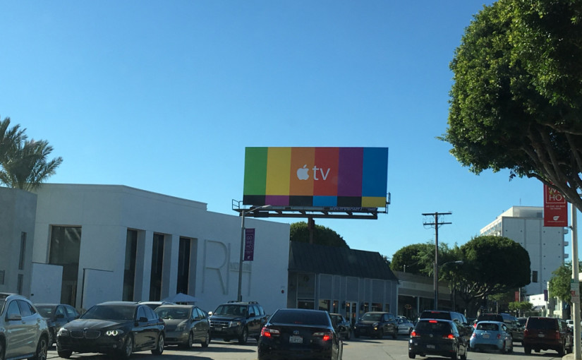 Apple TV je vraj hobby projektom Applu, alebo už nie? Zdá sa, že Apple TV dospela do štádia, kedy sa z nej začína stávať dôležitý produkt v ekosystéme Applu, čomu nasvedčuje aj nová reklamná kampaň, ktorú práve spoločnosť spustila v USA. Tam sa v niekoľkých mestách začali objavovať billboardy s veľmi jednoduchou grafikou. V podstate tieto billboardy imitujú monoskop typický pre NTSC región, ktorý narozdiel od toho nášho kruhového pozostáva len z niekoľkých farebných čiar. Pred nimi sa nachádza len logo Apple TV bez zbytočných slov.