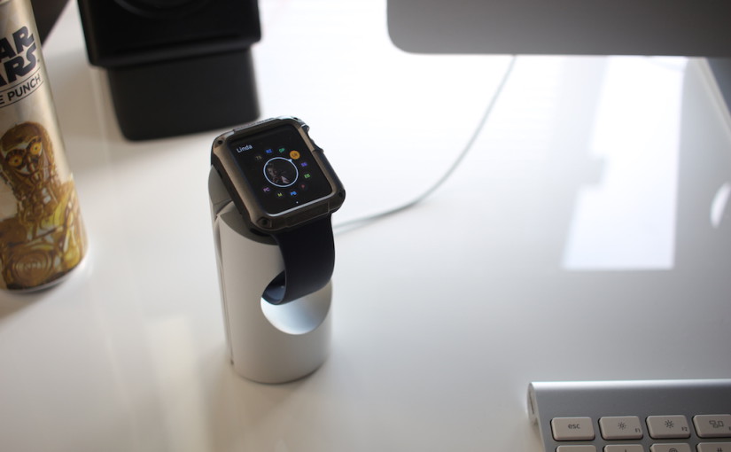 Nabíječku vložíte do vrchního výřezu, ze kterého zhrudva milimetry nabíječky vyčuhují nad okraj stojánku, takže se nemusíte bát poškrábání, hodinky se hliníkového stojánku nedotýkají. Kabel pak vložíte do připraveného žlábku a na spodní straně ohnete přesně podle žlábku. Stojánek je nutné používat s jednou nabíječkou kterou nepřenášíte nebo ji den co den neodpojujete od stojánku. Vzhledem k tomu, že je kabel skutečně ohnutý a je ve žlábku poměrně těsně uložen, nabíječka by nevydržela příliš dlouho kdybyste několikrát denně kabel vytahovali a vraceli do stojánku.