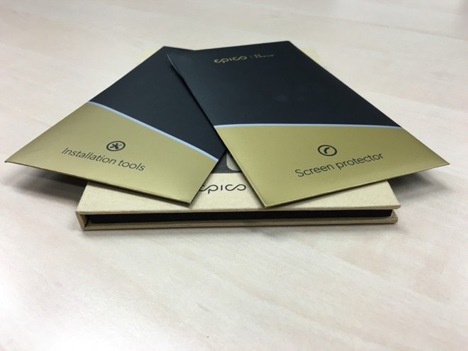 Pojďme si přiblížit samotnou aplikaci. V designově povedeném balení najdete dvě obálky. V jedné se nacházejí všechny nezbytnosti potřebné k dokonalému aplikování skla na displej včetně návodu v češtině. V druhé pak samotné sklo nalepené na tvrdé podložce a ještě pečlivě zabalené ve fólii, aby se k němu nedostalo ani smítko prachu.