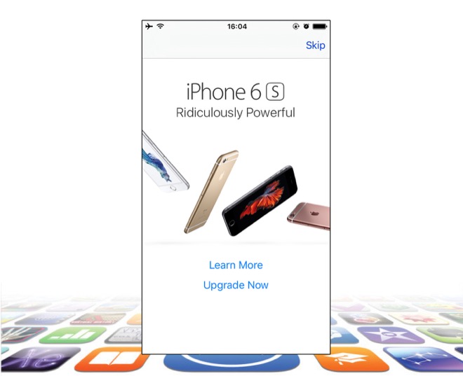 Apple rozjel další podporu nového iPhonu 6s, aby podpořil jeho prodeje mezi majiteli starších iPhonů. Společnost totiž do App Storu umístila novou reklamu, která na uživatele iPhonu 5s a starších možná trochu drze vyskočí a nabízí jim „šíleně výkonný“ iPhone 6s, na který mohou upgradovat. Po kliknutí na odkaz je uživatel okamžitě přesměrován do aplikace Apple Store, kde si může nový iPhone ihned koupit.
